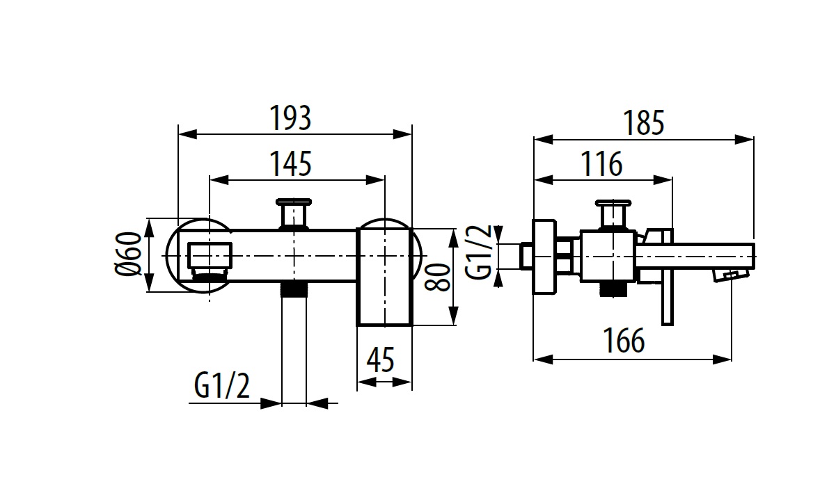 Wysięg wylewki: 166 mm