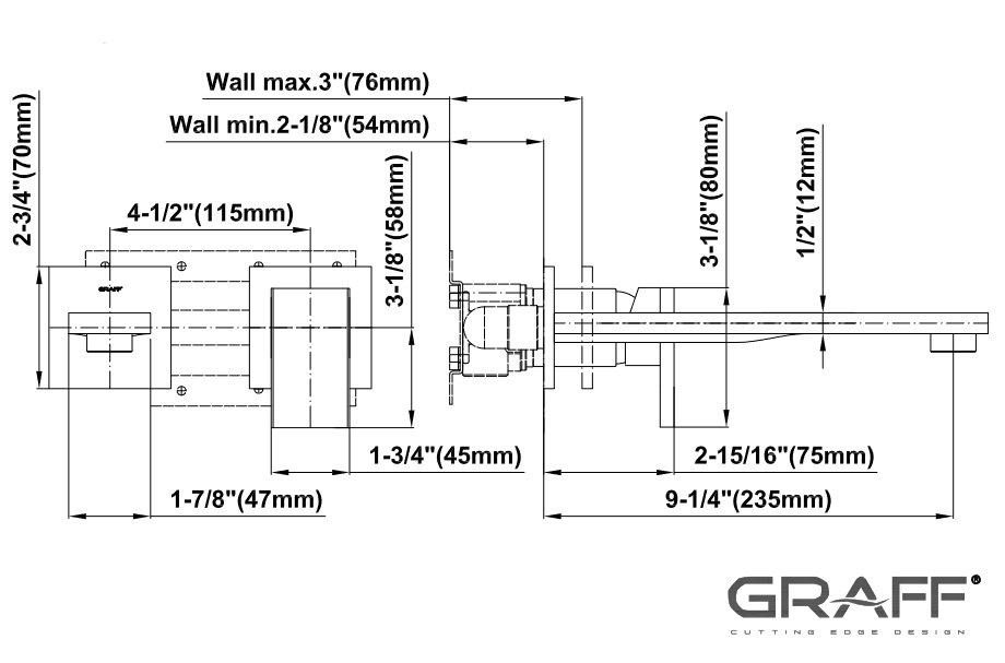 Graff Targa Bateria umywalkowa podtynkowa 235 mm - element zewnętrzny Chrom E-3636-LM36W-T