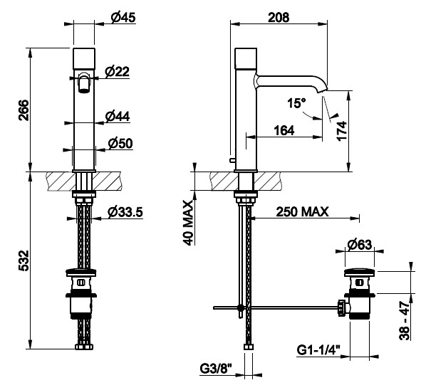 • Montaż: Jednootworowy