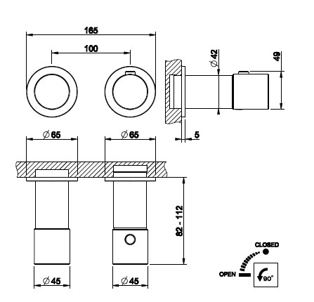 Gessi Habito Bateria prysznicowa termostatyczna 1-drożna element zewnętrzny finox 70432.149
