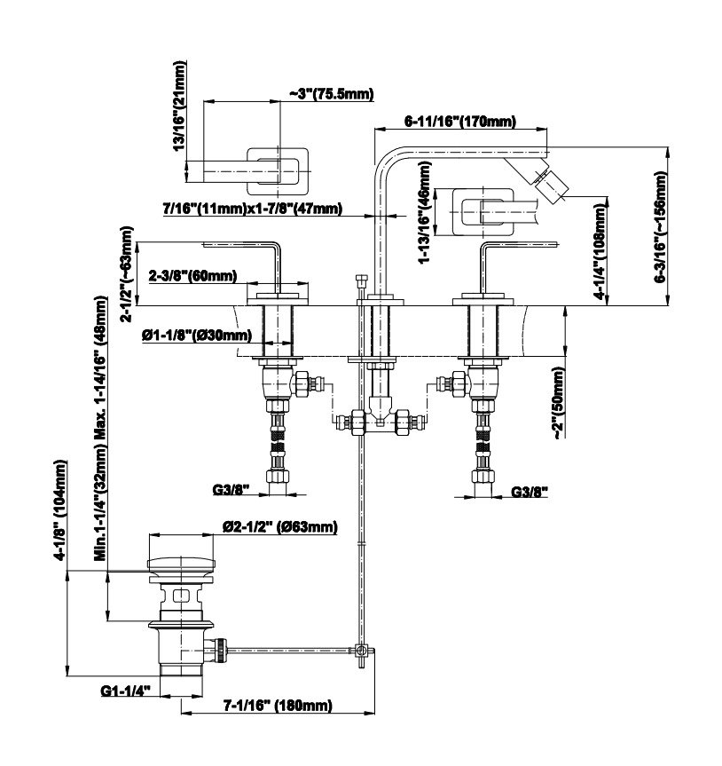 Graff Immersion Bateria bidetowa 3-otworowa z korkiem automatycznym Chrom E-2361-LM40