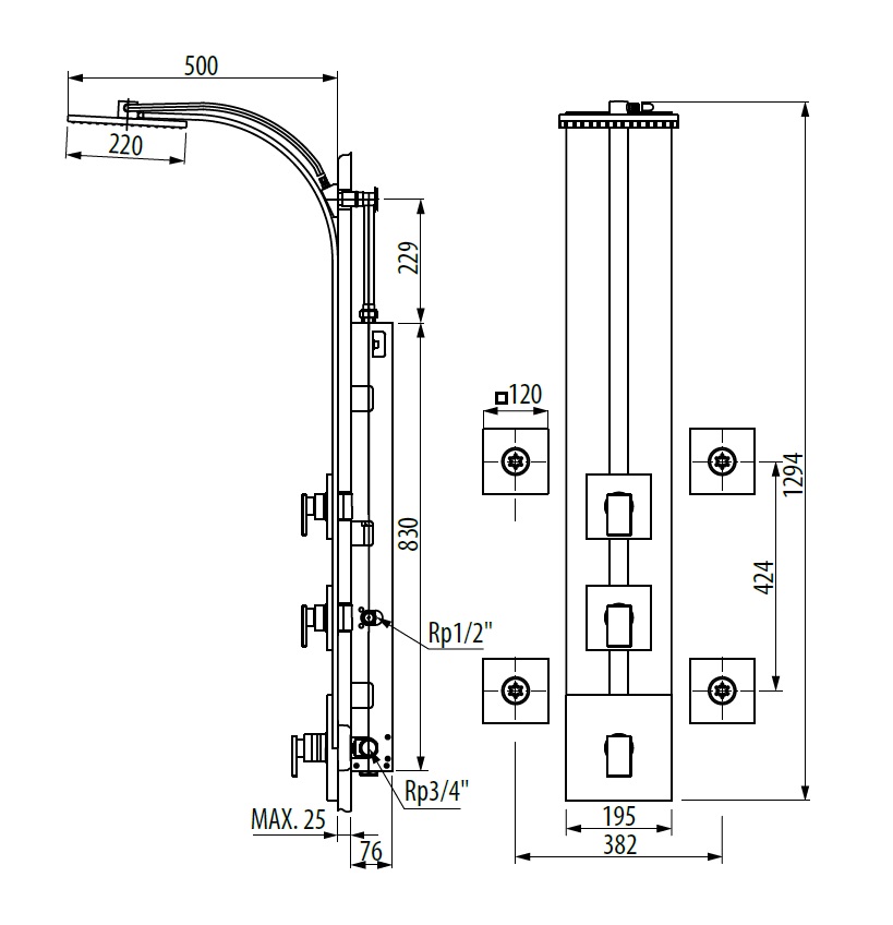 Graff Immersion Zestaw natryskowy termostatyczny z deszczownicą i dyszami prysznicowymi - element zewnętrzny Chrom EE3.100A-LM40S-T