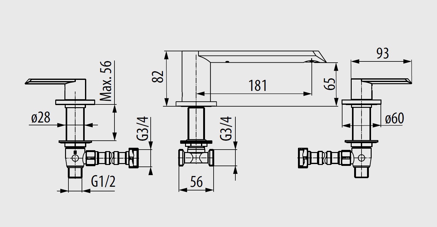 Graff Phase Bateria wannowa 3-otworowa bez zestawu prysznicowego Chrom E-6650-LM45B