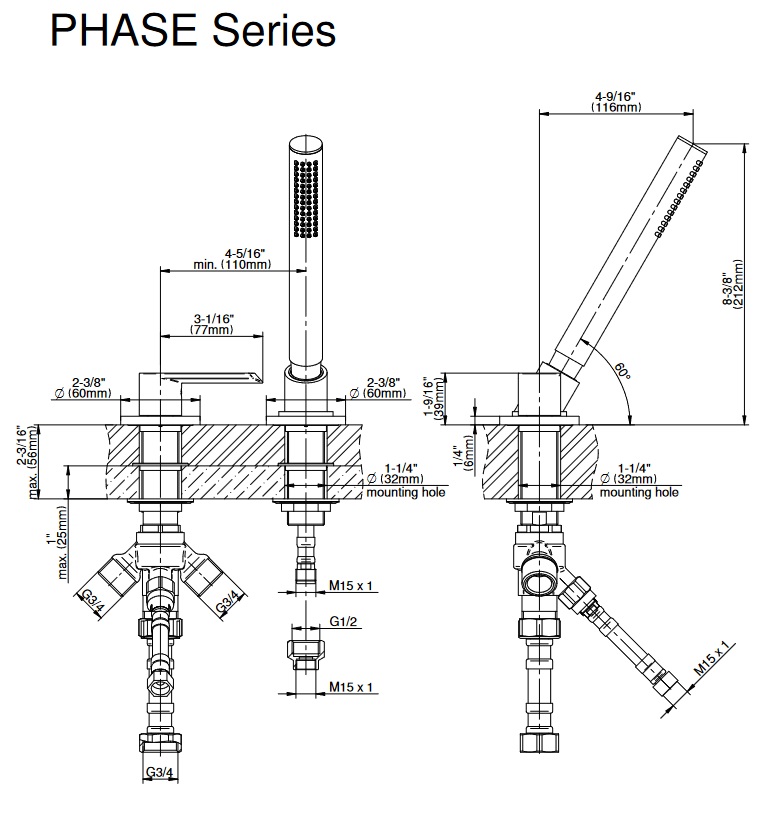 Graff Phase Zestaw prysznicowy do baterii wannowej Chrom E-6355-LM45B