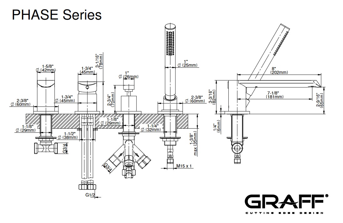 Graff Phase Bateria wannowa 4-otworowa z zestawem prysznicowym Chrom E-6659-LM45W