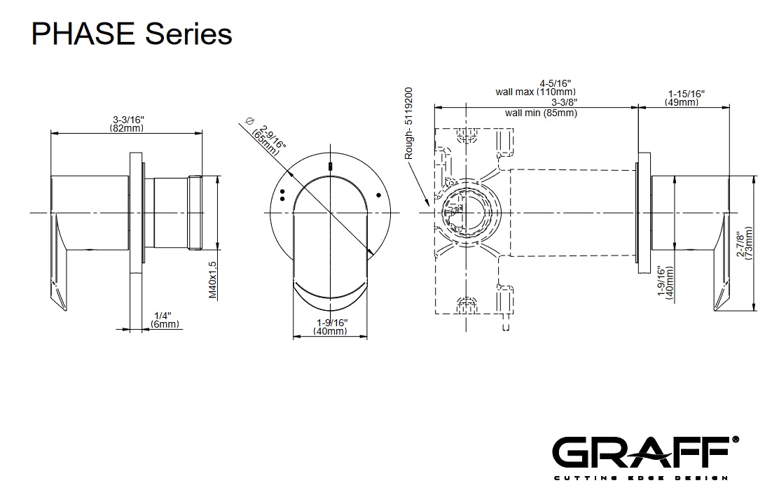 Graff Phase Zawór 2-drożny podtynkowy - element zewnętrzny Chrom E-8068-LM45E1-T