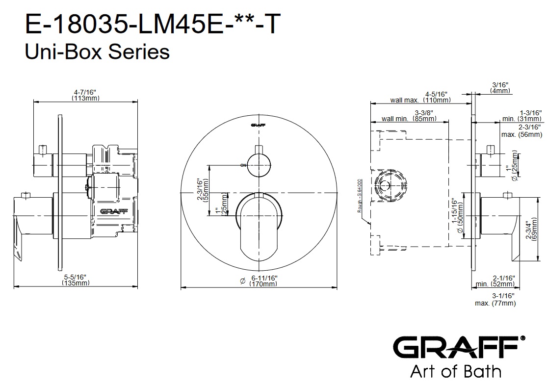Graff Phase Bateria termostatyczna z systemem UNI-BOX podtynkowa - element zewnętrzny Chrom E-18035-LM45E-T