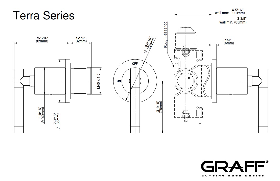 Graff Terra Zawór odcinający podtynkowy - element zewnętrzny Chrom E-8097-LM62E1-T