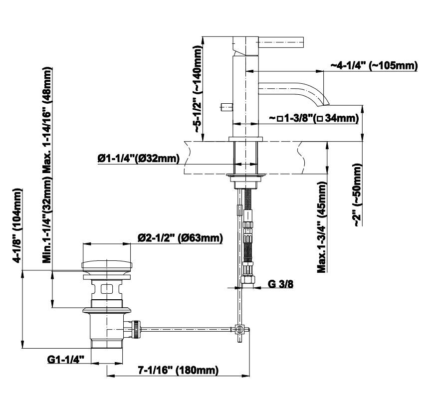 Wysokość wylewki: 50 mm