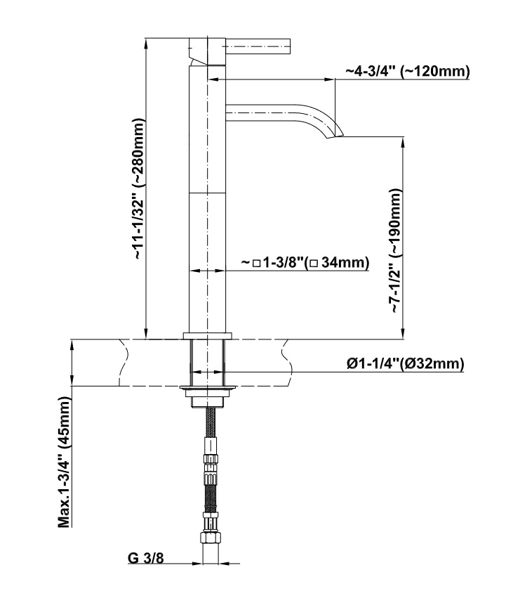 Graff Qubic Bateria umywalkowa wysoka jednouchwytowa 120 mm Chrom E-6206-LM39M