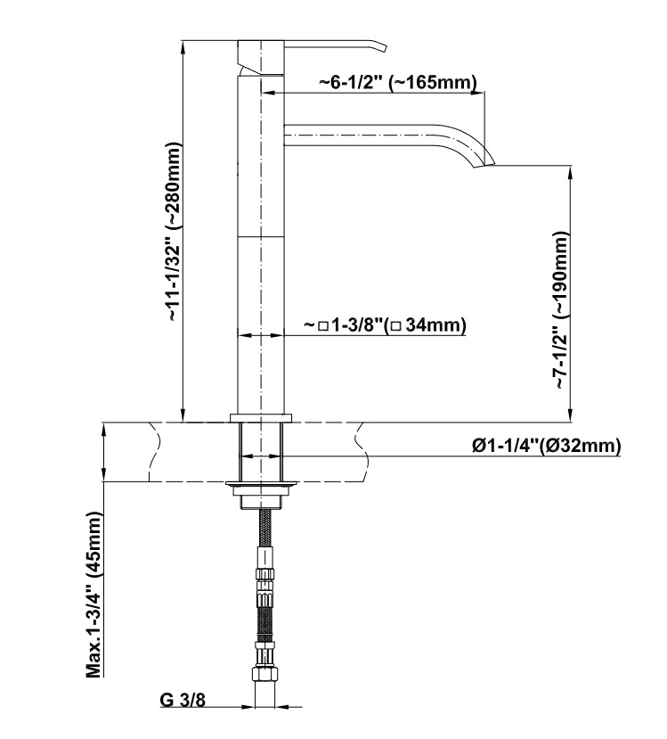 Wysokość wylewki: 190 mm