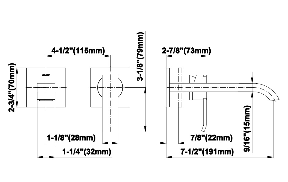 Graff Qubic Bateria umywalkowa 2-otworowa podtynkowa 191 mm - element zewnętrzny Chrom E-6235-LM38W-T