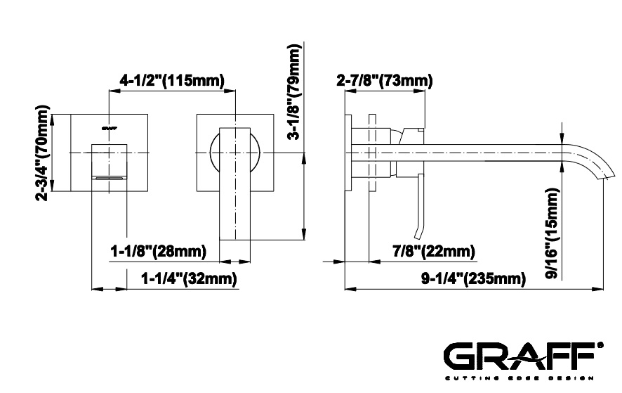 Graff Qubic Bateria umywalkowa 2-otworowa podtynkowa 234 mm - element zewnętrzny Chrom E-6236-LM38W-T