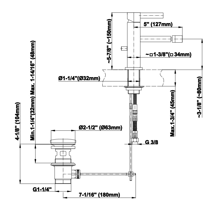 Graff Qubic Bateria bidetowa jednouchwytowa z korkiem automatycznym Chrom E-6261D-LM39M