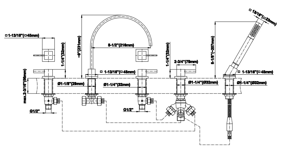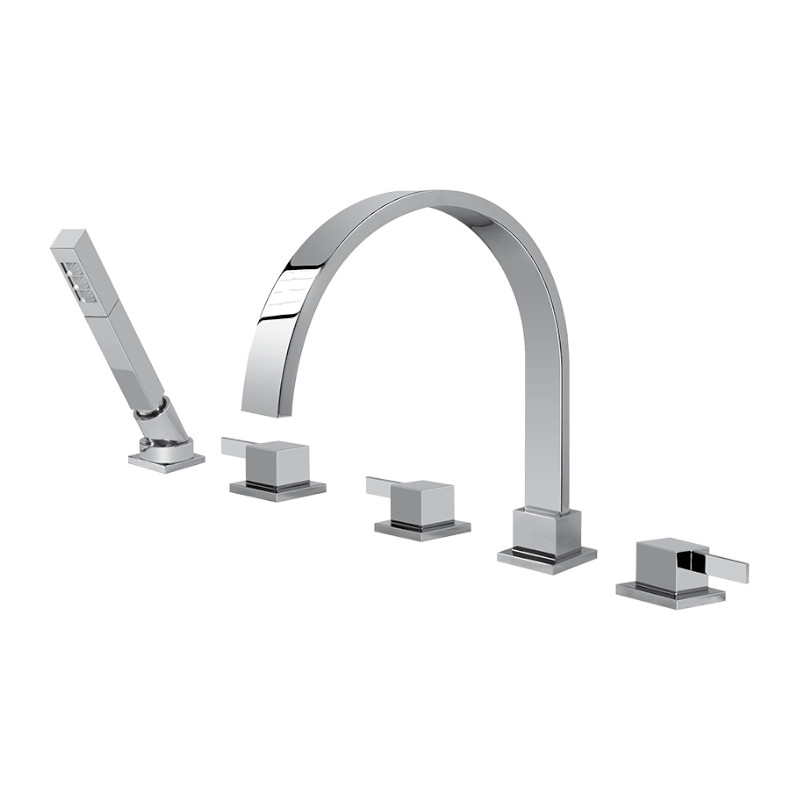 Graff Qubic Bateria wannowa 5-otworowa z zestawem prysznicowym Chrom E-6251-LM39B