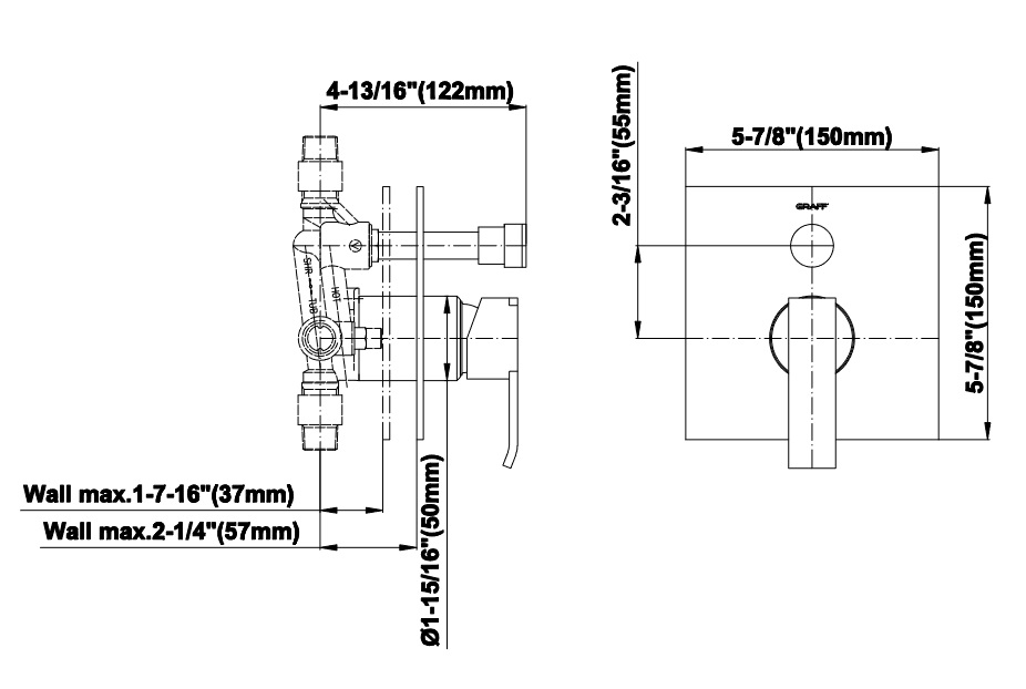 Graff Qubic Bateria natryskowa podtynkowa z przełącznikiem - element zewnętrzny Chrom E-7090-LM38N-T
