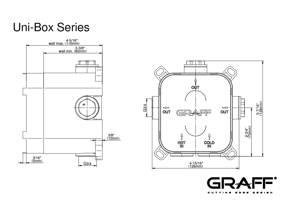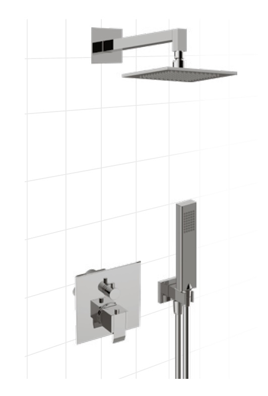 Graff Qubic Zestaw natryskowy termostatyczny z UNI-BOX podtynkowy z deszczownicą 250x250 mm z zestawem prysznicowym - element zewnętrzny Chrom QUB02