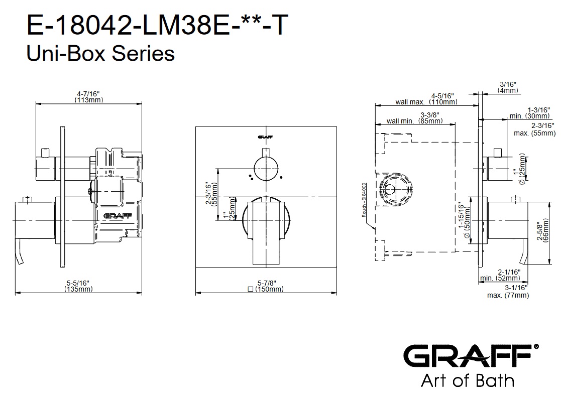 Graff Qubic Bateria natryskowa podtynkowa z systemem UNI-BOX - element zewnętrzny Chrom E-18042-LM38E-T