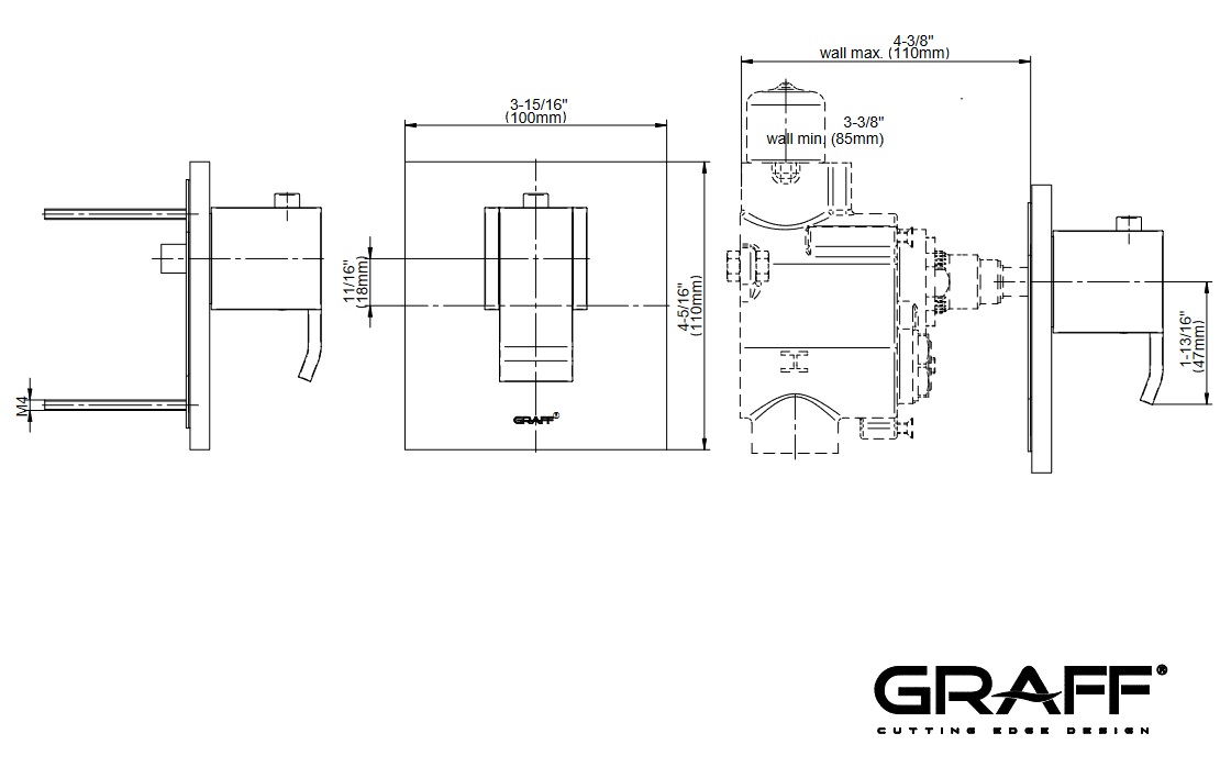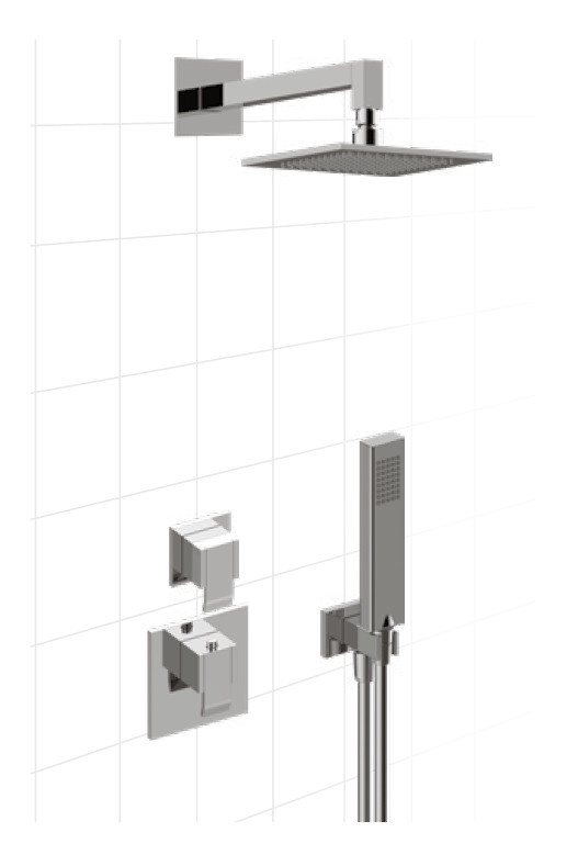 Graff Qubic Zestaw natryskowy termostatyczny z podtynkowy z deszczownicą 250x250 mm z zestawem prysznicowym - element zewnętrzny Chrom QUB03