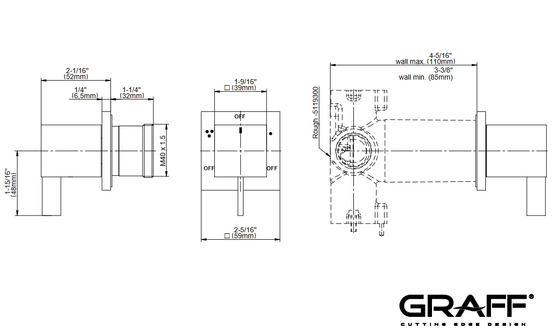 Graff Qubic Rozdzielacz 3-drożny podtynkowy - element zewnętrzny Chrom E-8072-LM39E1-T