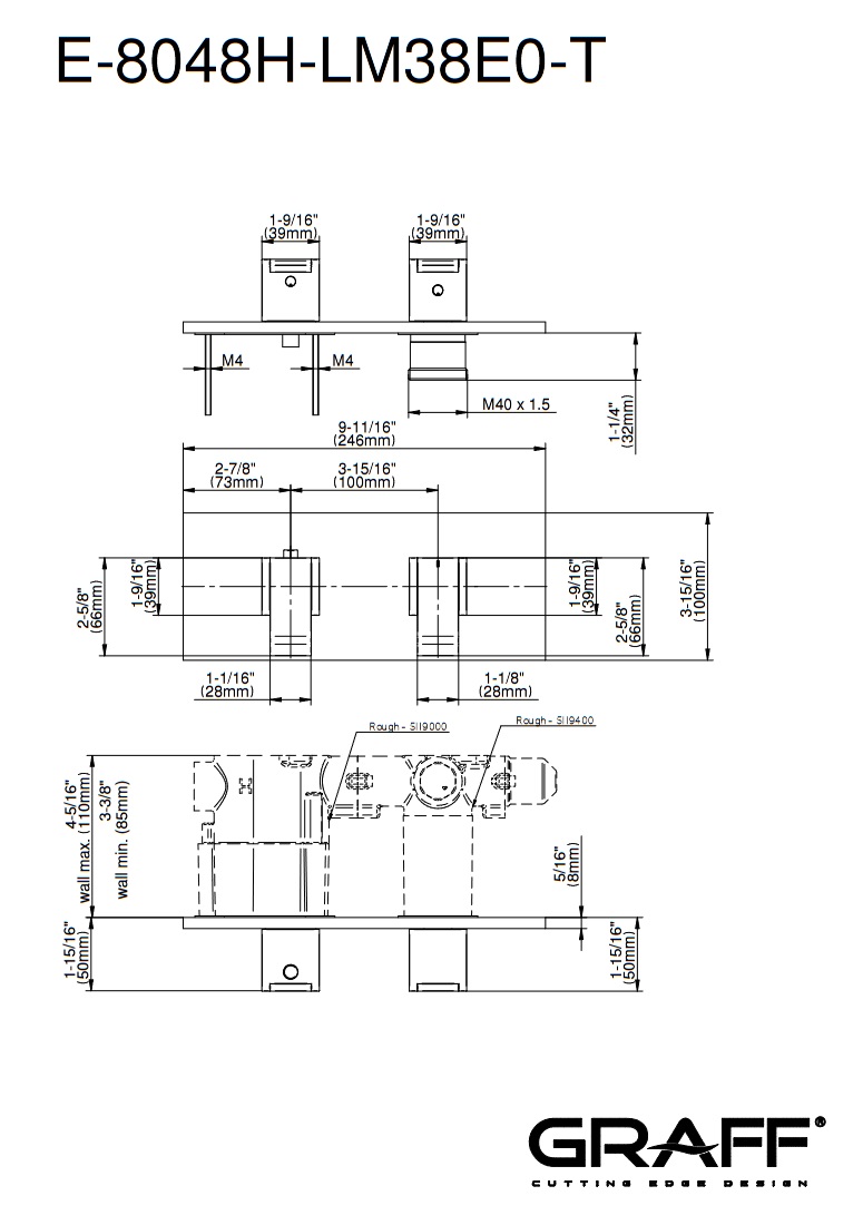 Graff Qubic Bateria natryskowa termostatyczna 2-uchwytowa podtynkowa - element zewnętrzny Chrom E-8048H-LM38E0-T