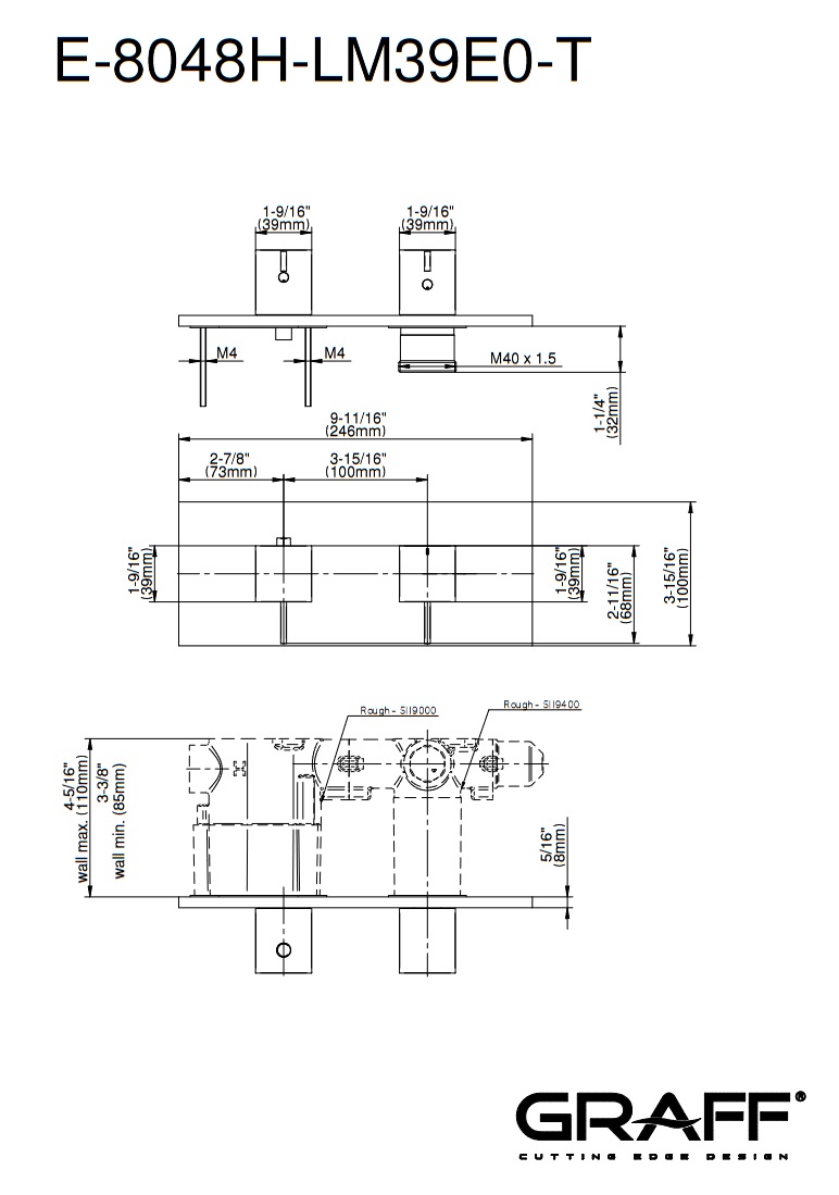 Graff Qubic Bateria natryskowa termostatyczna 2-uchwytowa podtynkowa - element zewnętrzny Chrom E-8048H-LM39E0-T