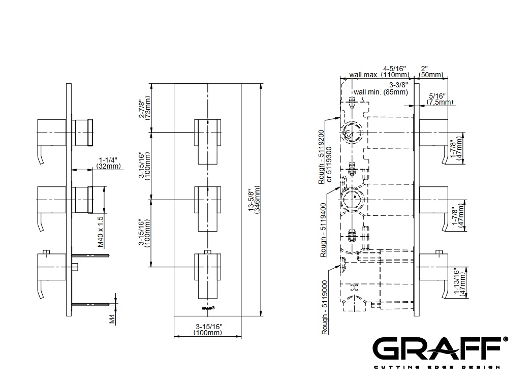 Graff Qubic Bateria natryskowa termostatyczna 3-uchwytowa podtynkowa - element zewnętrzny Chrom EM7.690H-RH0-T