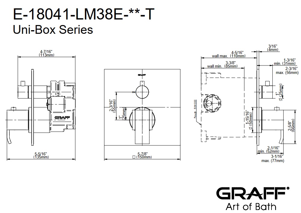Graff Qubic Bateria natryskowa termostatyczna podtynkowa - element zewnętrzny Chrom E-18041-LM38E-T