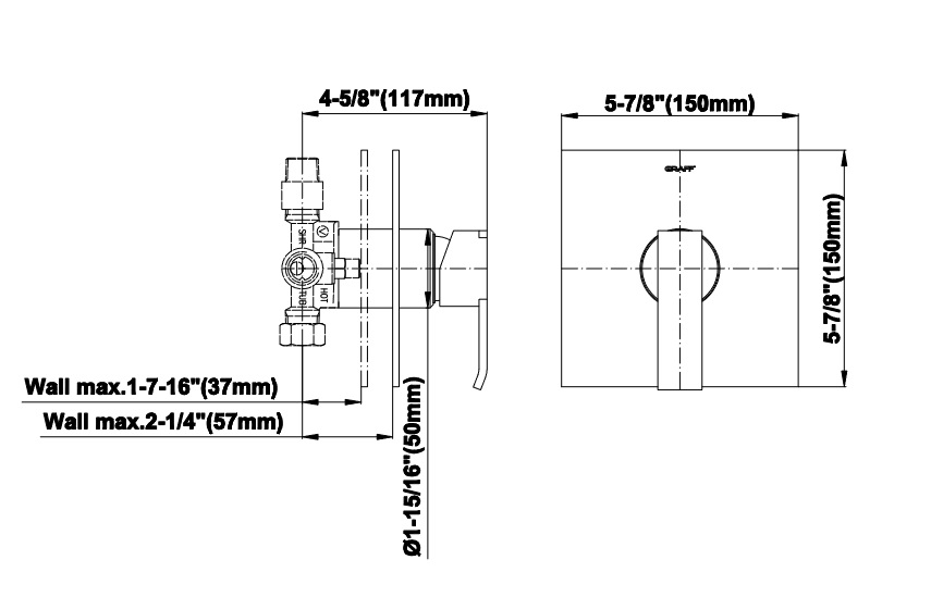 Graff Qubic Bateria natryskowa podtynkowa - element zewnętrzny Chrom E-7040-LM38N-T