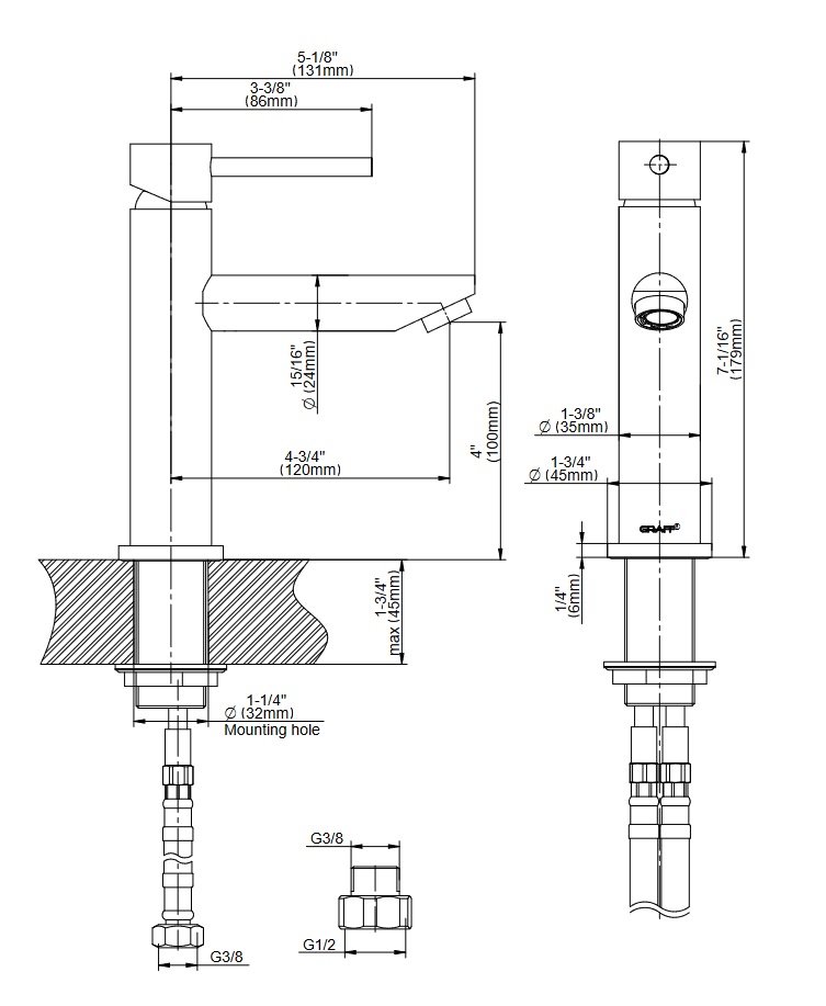 Graff M.E./M.E.25 Bateria umywalkowa jednouchwytowa 120 mm Chrom E-6103-LM41