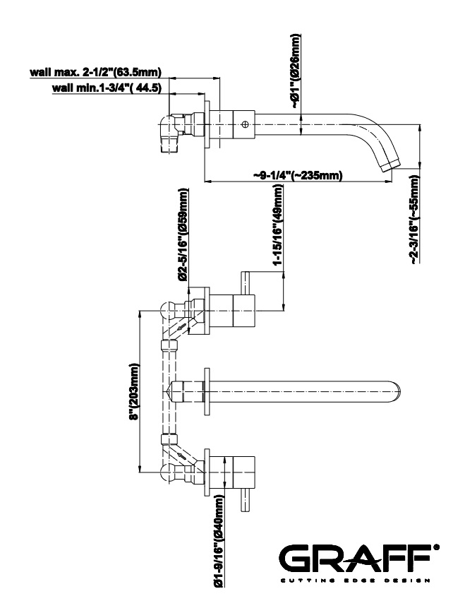 Graff M.E./M.E.25 Bateria umywalkowa 3-otworowa 235 mm podtynkowa - element zewnętrzny Chrom E-6130-LM37W-T