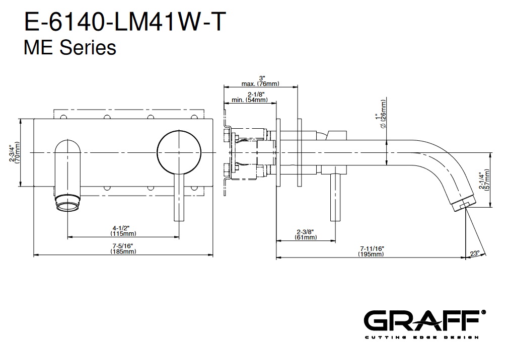 Graff M.E./M.E.25 Bateria umywalkowa 191 mm podtynkowa - element zewnętrzny Chrom E-6140-LM41W-T