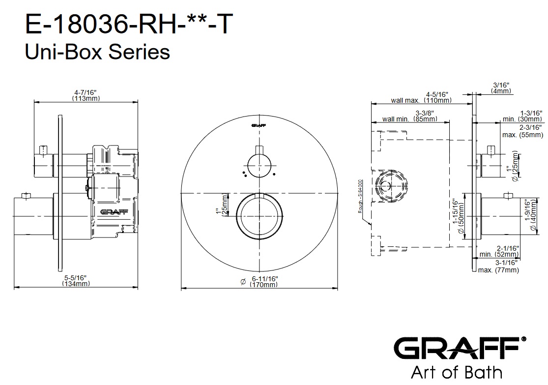 Graff M.E./M.E.25 Bateria natryskowa z systemem UNI-BOX podtynkowa - element zewnętrzny Chrom E-18036-RH-T
