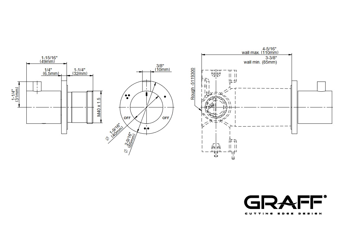 Graff M.E./M.E.25 Zawór 3-drożny podtynkowy - element zewnętrzny Chrom E-8069-RH1-T