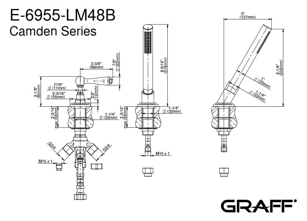 Graff Camden Zestaw prysznicowy z przełącznikiem Chrom E-6955-LM48B