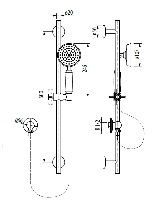 Graff Camden Zestaw prysznicowy ścienny na drążku Chrom E-8666