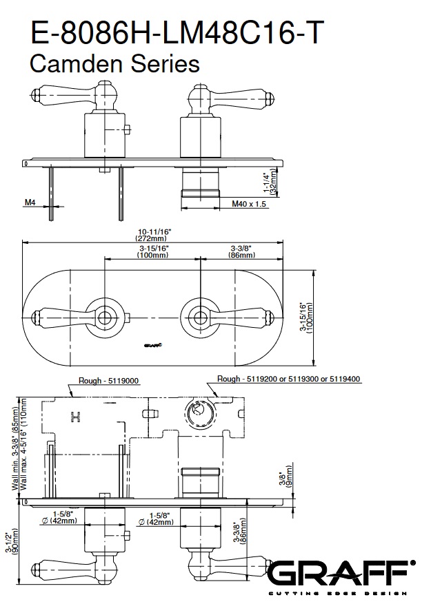 Graff Camden Bateria natryskowa termostatyczna 2-uchwytowa podtynkowa - element zewnętrzny Chrom E-8086H-LM48E0-T