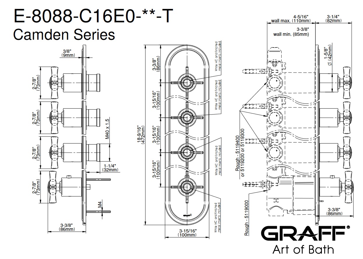 Graff Camden Bateria natryskowa termostatyczna 4-uchwytowa podtynkowa - element zewnętrzny Chrom E-8088-LM48C16-T