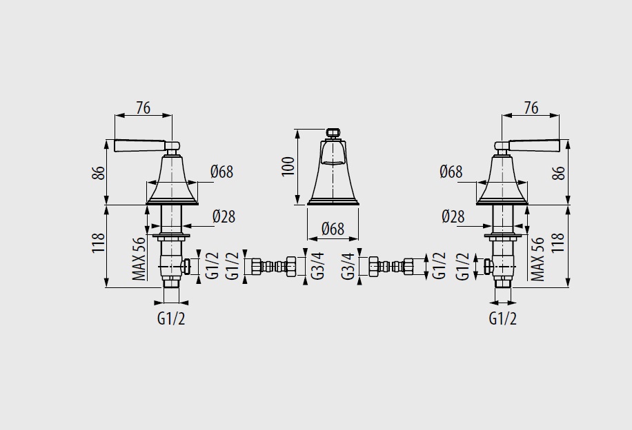 Graff Finezza Uno Bateria wannowa 3-otworowa bez zestawu prysznicowego Chrom E-6850-LM47B