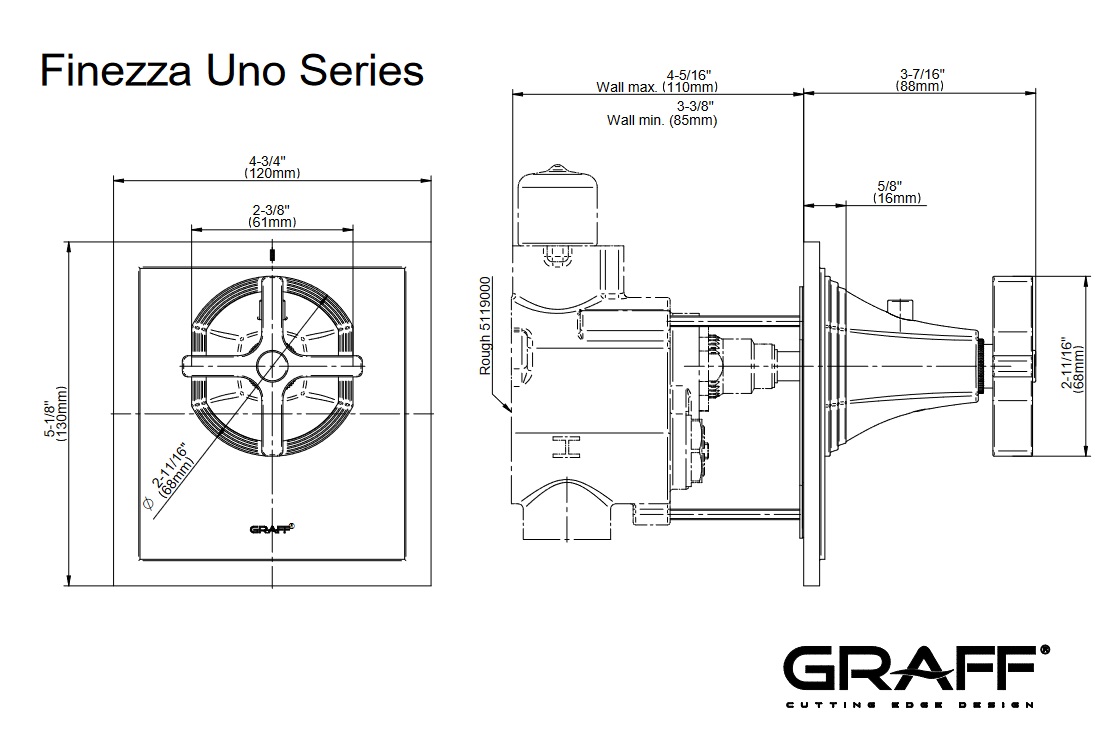 Graff Finezza Uno Bateria prysznicowa termostatyczna podtynkowa - element zewnętrzny Chrom E-8044-C15E-T