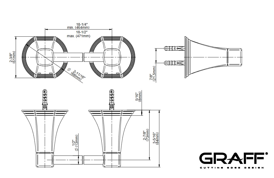 Rozstaw mocowań: 464 mm