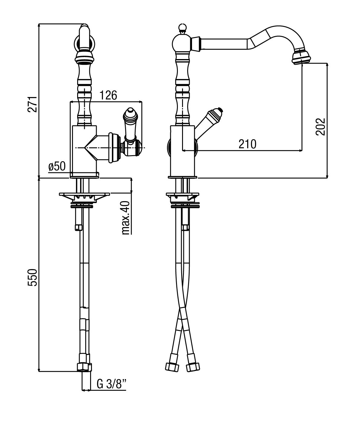 Alpi London Bateria kuchenna jednootworowa chrom LO41482CR