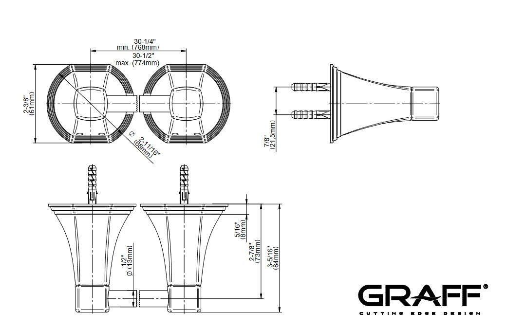 Rozstaw mocowań: 768 mm