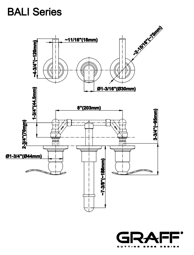 Graff Bali Bateria umywalkowa 3-otworowa podtynkowa 188 mm - element zewnętrzny Chrom E-2130-LM20B-T