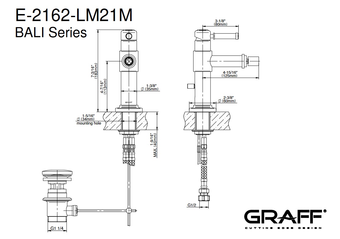 Graff Bali Bateria bidetowa jednouchwytowa z korkiem Chrom E-2162-LM21M
