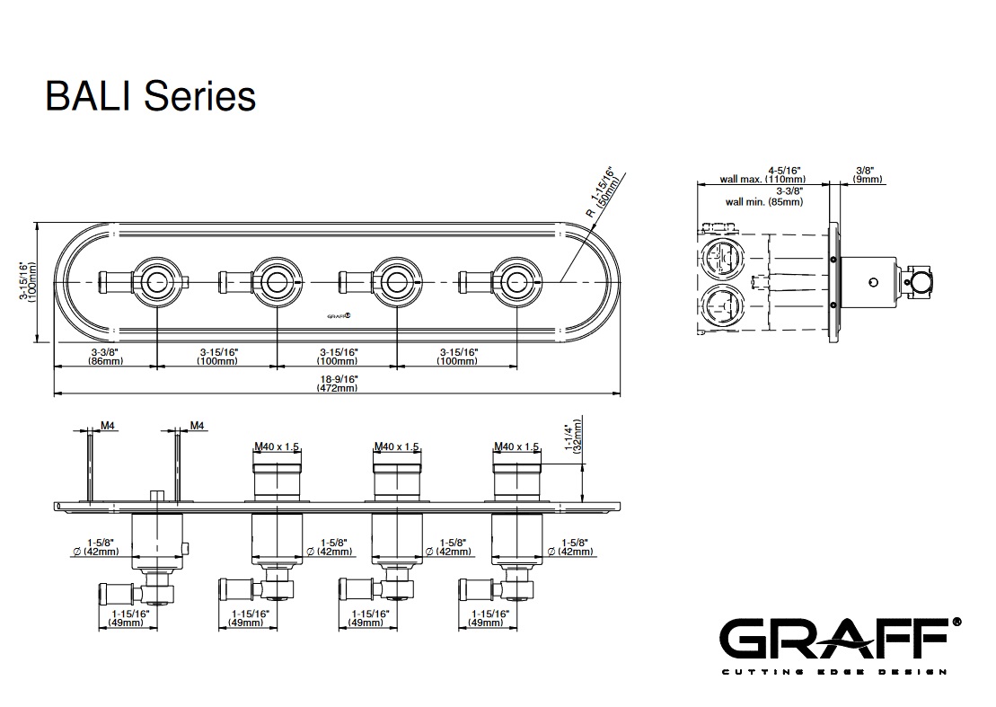 Graff Bali Bateria prysznicowa termostatyczna 4-uchwytowa podtynkowa - element zewnętrzny Chrom E-8088H-LM20E0-T