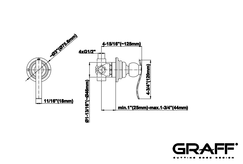Graff Bali Zawór odcinający 3-drożny podtynkowy - element zewnętrzny Chrom E-8060-LM20S-T