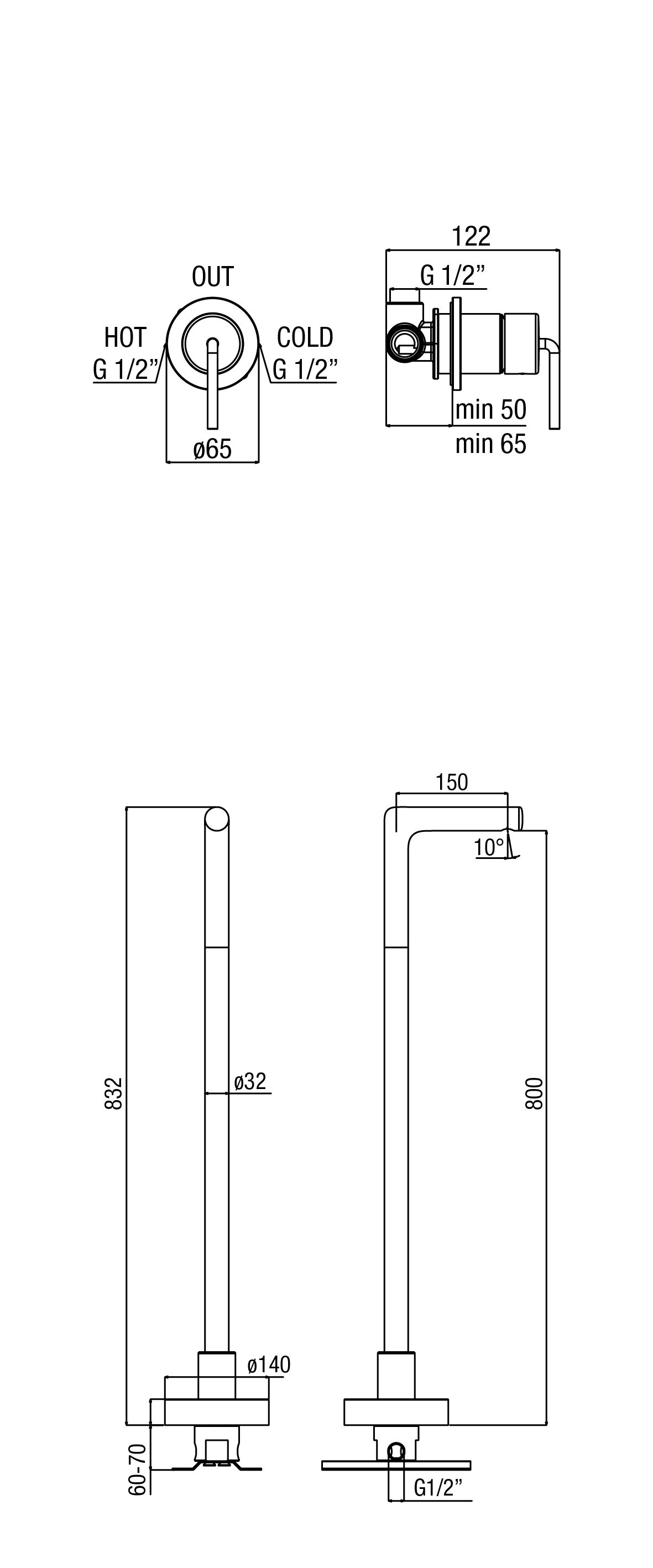 Alpi Allen Bateria wannowa wolnostojąca z mieszaczem podtynkowym chrom ALB02CR+AL98861CR