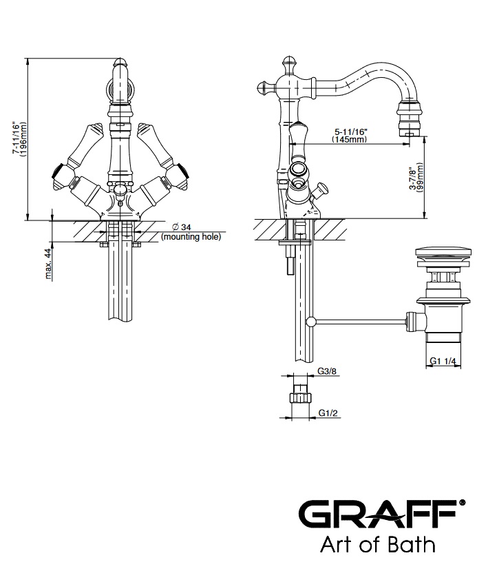 Graff Adley Bateria bidetowa jednootworowa z korkiem Chrom E-2562-LM15