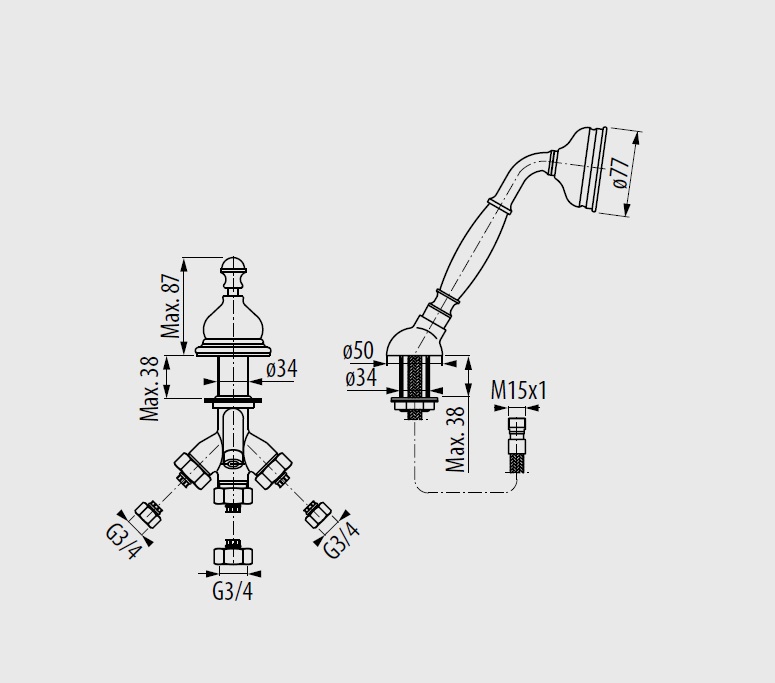 Graff Adley Zestaw natryskowy z przełącznikiem Chrom E-3855